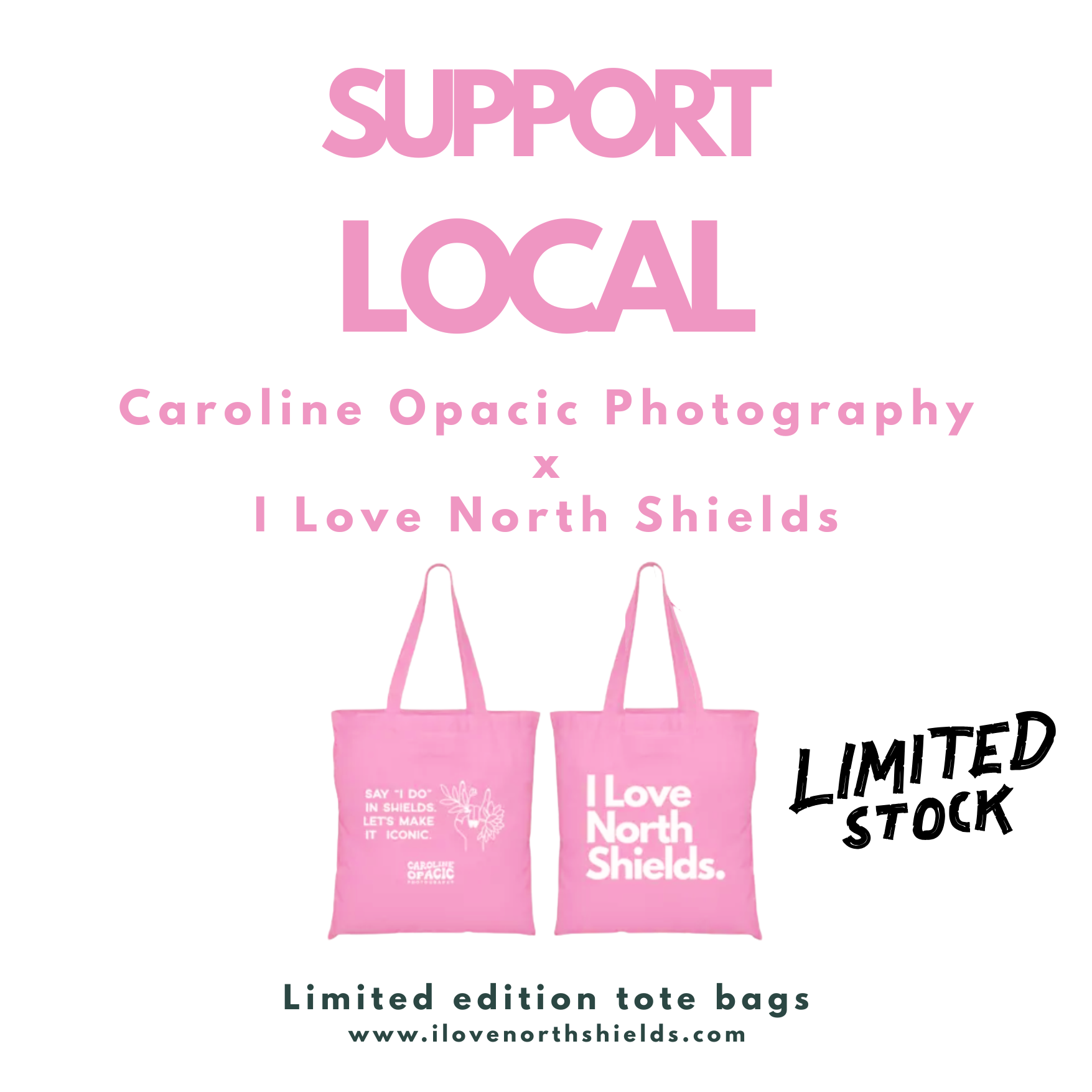 🌸 Limited Edition Pink Tote Bag — Say “I do” in Shields. Let’s Make it Iconic